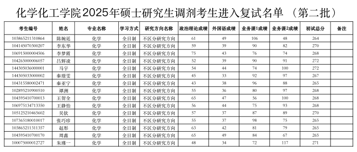附:哔咔漫画 2025年化学专业硕士调剂考生名单(第二批)